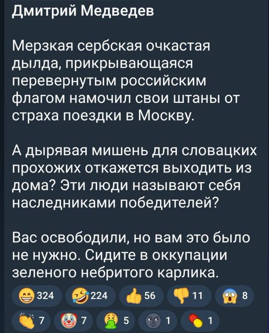 Регулярно читаю всякие Zетные тг... Просто из зоологического интереса. Бывают там более-менее мнения, но в основном это тупо клиника. Причем, взаимоисключающая, но их это не смущает. Обыкновенный фашизм в действии.
