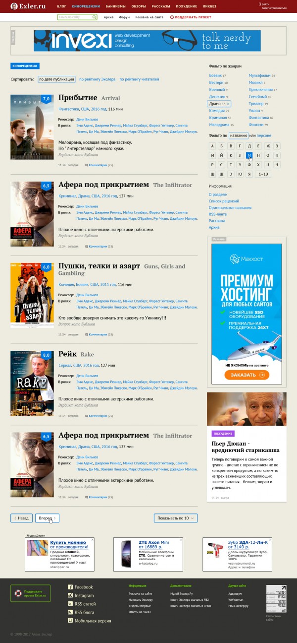 Пока что у нас выходит каша - глаз начинает читать статью.... и продолжает двигаться к тегам/жанрам/алфавиту.