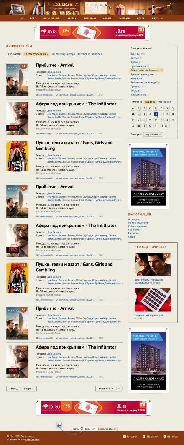Доделанный дизайн кинораздела. Главная страница кинораздела, развернутая статья, вариант под экран мобильника (там по просьбам вынесли вверх поиск и отбор).