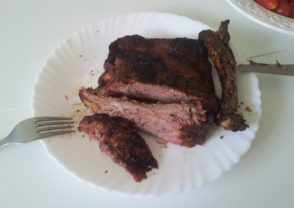 Вчера опробовал новый (для себя) рецепт приготовления свиных ребрышек на барбекюшнице - старшие товарищи подсказали. Рецепт, между тем, очень простой. Покупаются свиные ребрышки - или в виде полоски, или уже разрезанные.
