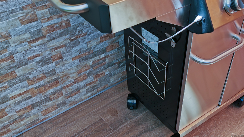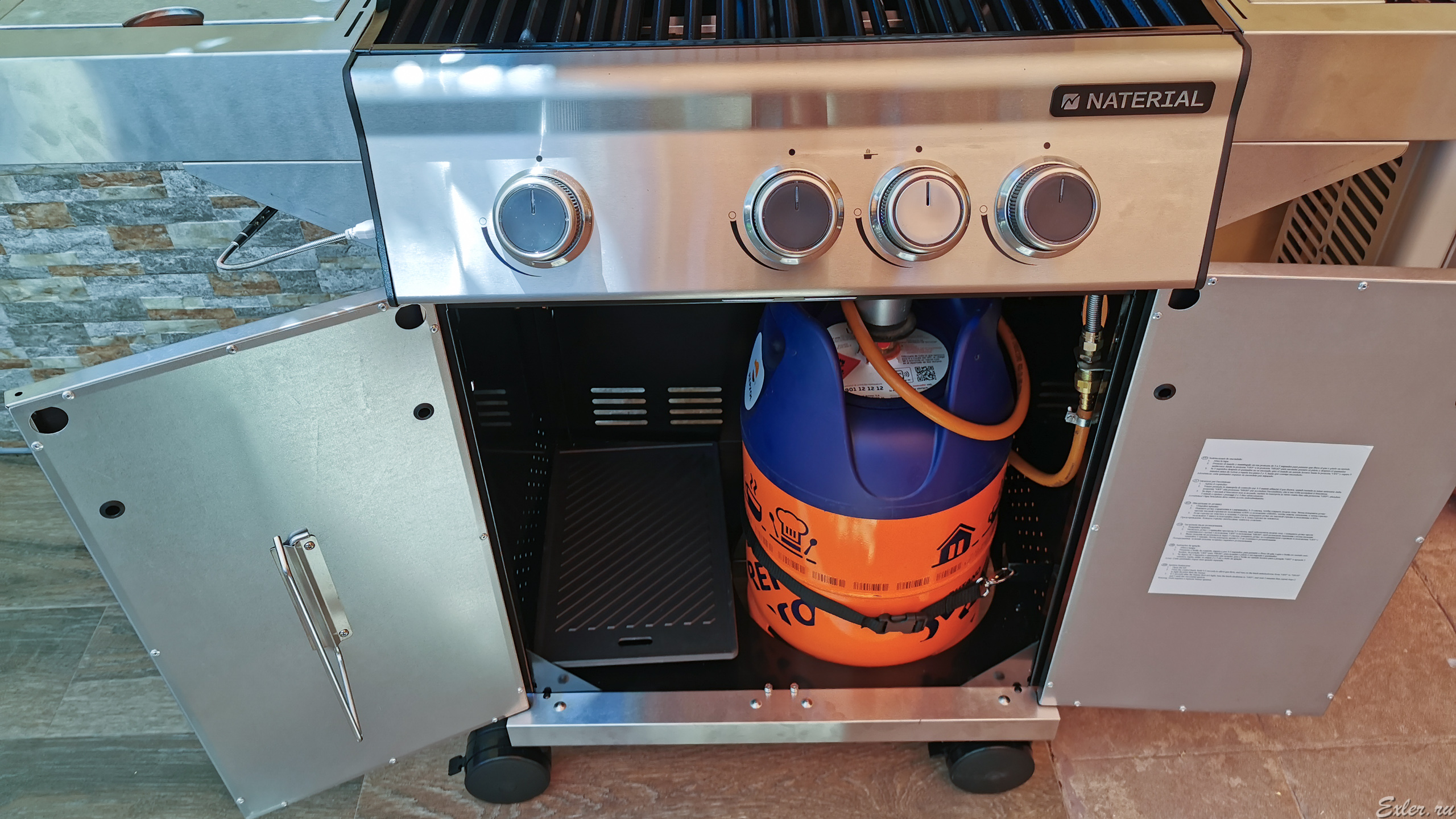 Баллон с газом ставится внутрь и пристегивается. Слева лежит та самая планча, которой можно заменить маленькую решетку.