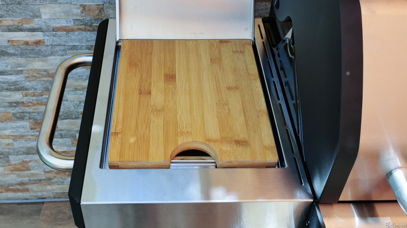Слева под крышкой - разделочная доска (это все было в комплекте).