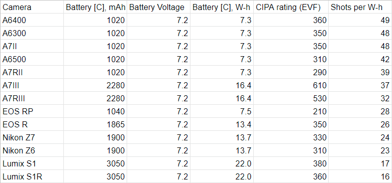 Да, A7RII славится малым временем работы от АКБ. Она там просто очень маленькая для такой камеры... Я вот подсобрал статистику по экономичности беззеркалок: от самых экономичных к самым прожорливым.