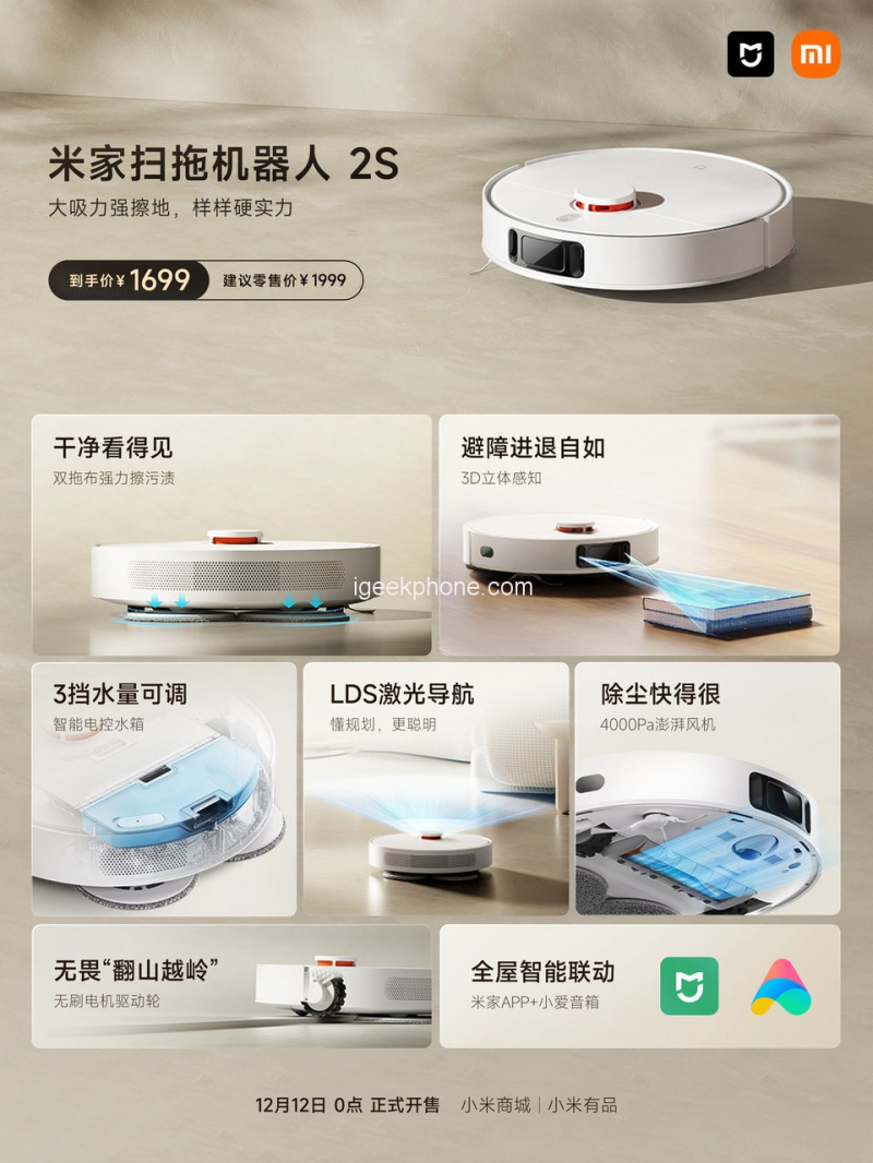 Цена робота-пылесоса Mijia Robot Vacuum Cleaner 2S - 1999 юаней, это примерно $279.