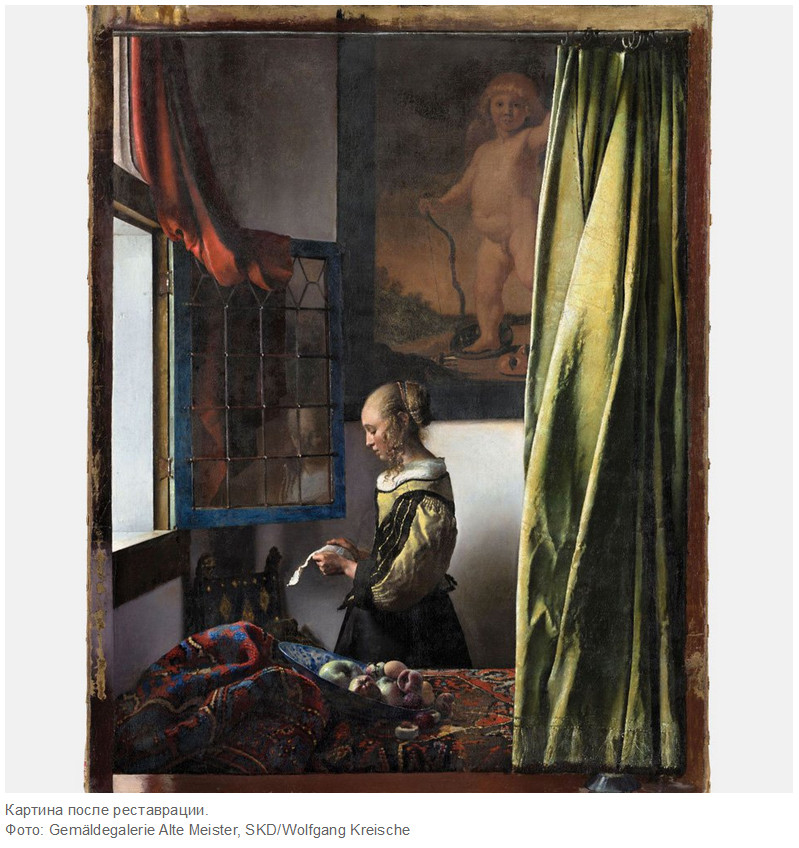 Этот слой краски аккуратно удалили, картина с Купидоном появилась, и все изображение "заиграло" совершенно по-другому.