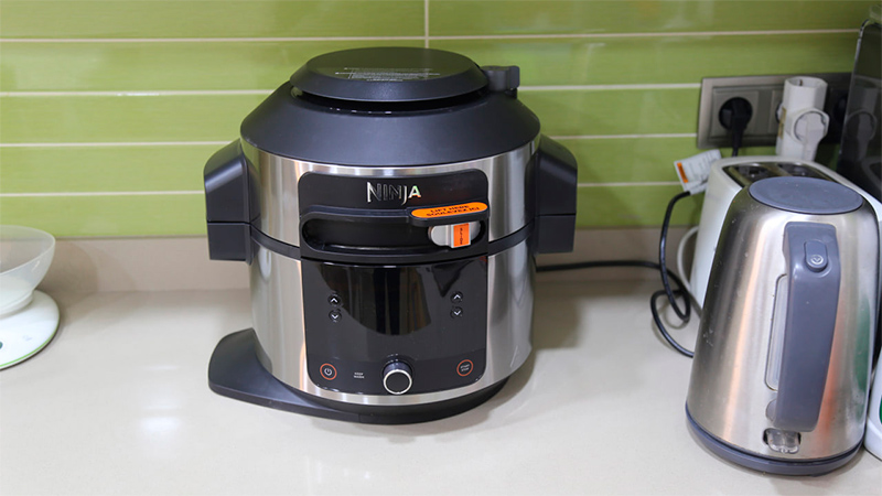 Я знал, что такое устройство существует - это Ninja Foodi Multi-Cooker OP300EU. Ninja - известный на весь мир производитель инновационного кухонного оборудования из США. У этой модели были две съемные крышки: одна для приготовления под давлением пара, а другая - с тэном и вентилятором, - для режима аэрогриля.