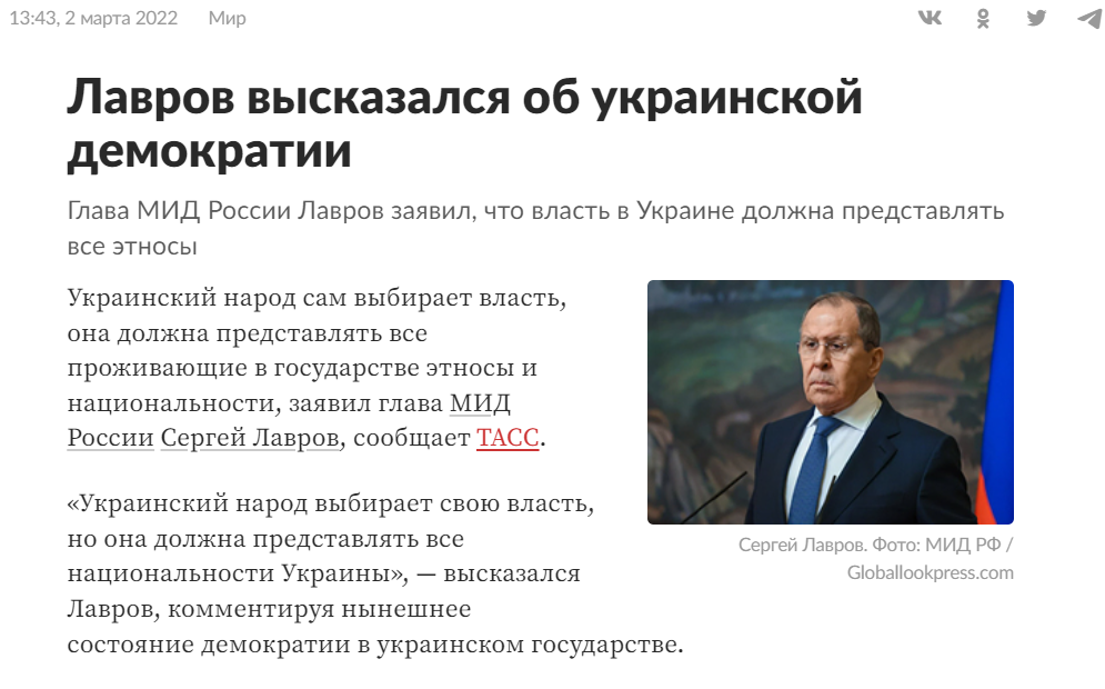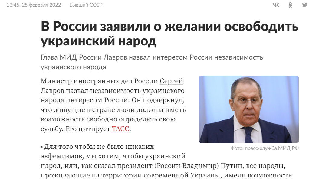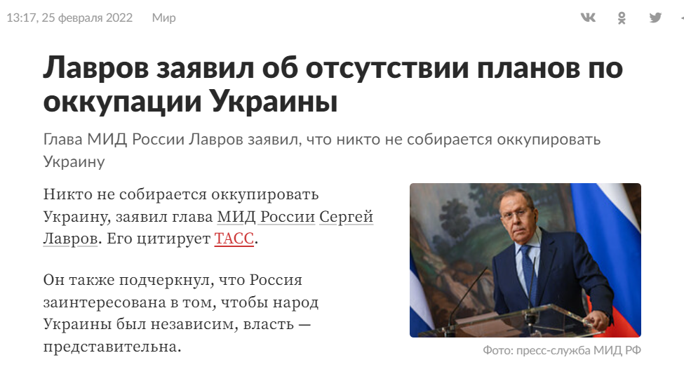 Лавров дал интервью итальянскому телеканалу "Mediaset". Текстовую расшифровку выложили на сайте МИД. Разумеется, Лавров не мог не осчастливить мир новыми откровениями, цитирую:
