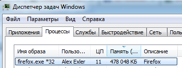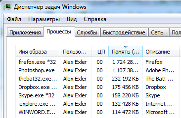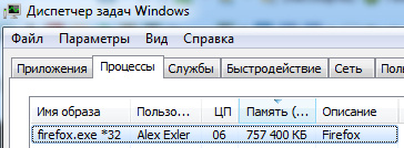 Полез в диспетчер. А там Firefox - во всей своей красе. Почти два гига изволили откушать - при 18-ти открытых закладках. (Ну, понятно, что другие закладки также открывались, но закрывались.) Photoshop, кстати, тоже хорош - больше гига при том, что в нем вообще ничего не открыто. При старте он берет где-то 350-400.