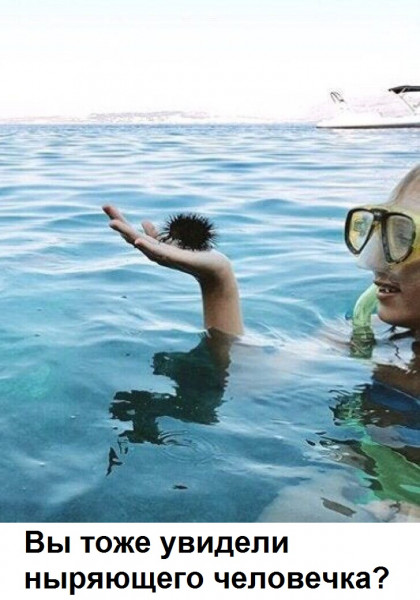 Да, вижу. Человек (женщина?) в нырятельной амуниции, держит на руке нечто, похожее на ежа 😄