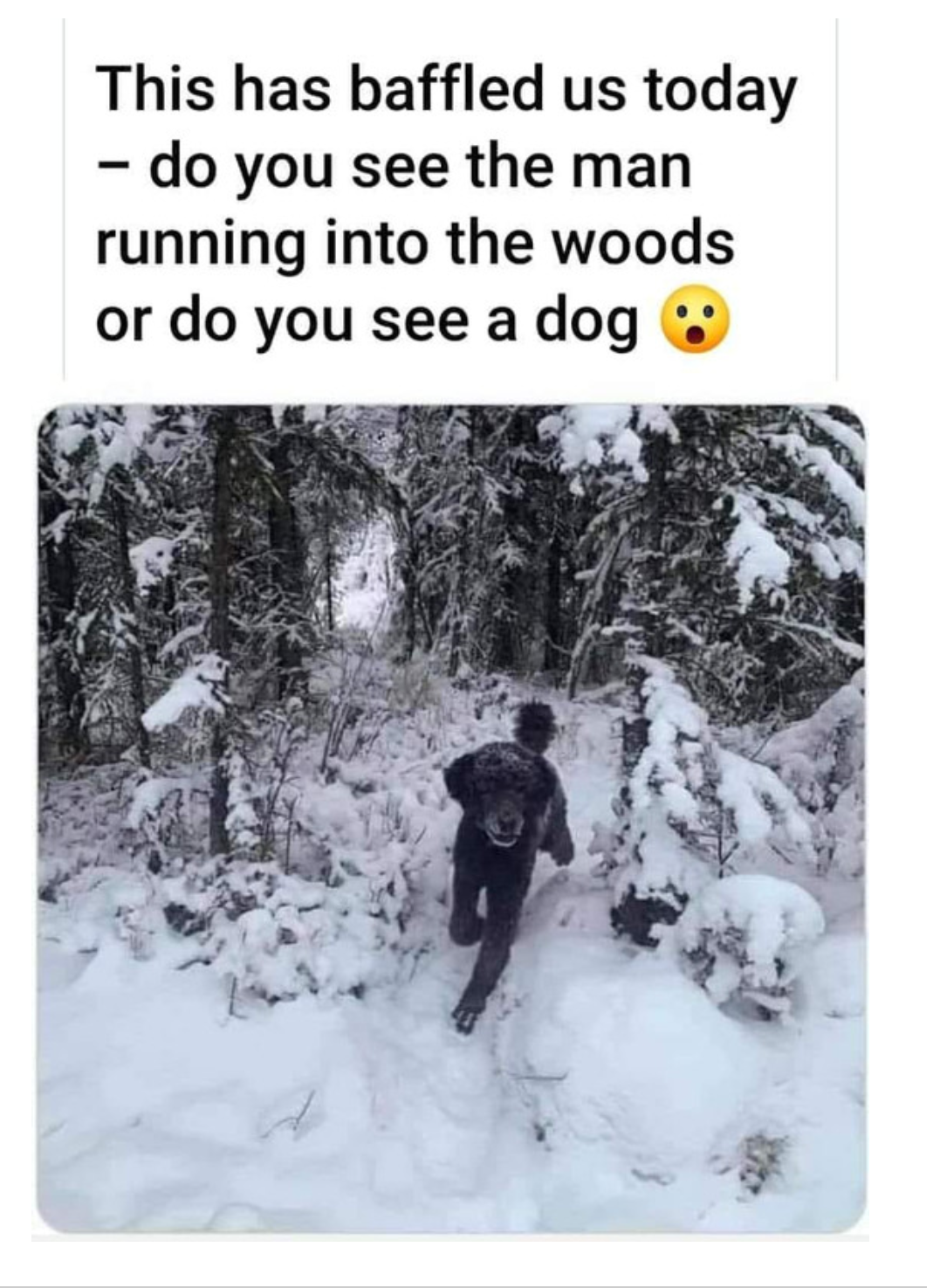 Там главное глаза разглядеть и понять, что не шапка это, а хвост, торчащий сзади, и сразу видно собаку )