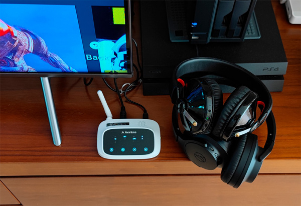 Для просмотра телевизора в беспроводных наушниках я использую устройство Avantree Oasis. К нему подключил дорогущие беспроводные полноформаты Audio-Technica ATH-ANC700BT (они лежали без дела, потому что на компьютере я использую Sony WH-1000X M3).