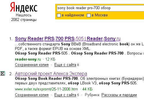 Эти его фичи иногда конкретно бесят -- всё чаще пользуюсь Яндексом или другими поисковиками. http://www.google.com/search?q=%D0%9E%D0%B1%D0%B7%D0%BE%D1%80+Sony+Book+Reader+PRQ-700