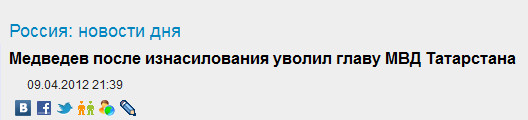 Afonych: Ничё не понял... То ли Медведев изнасиловал главу МВД Татарстана и уволил его за это, то ли глава МВД Татарстана изнасиловал Медведева и был уволен... Надо бы прояснить вопрос