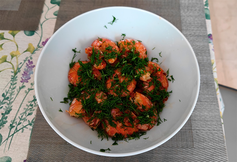 Смысл посыпать укропом креветочные шкурки, которые все равно снимут?