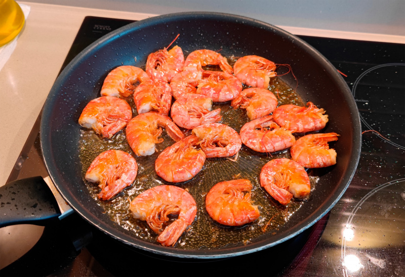 Что-то мы давненько креветок не делали, подумал я. Ну, не проблема ни разу - купил в "Меркадоне" двухкилограммовую упаковку свежезамороженных аргентинских (они большие и вкусные).