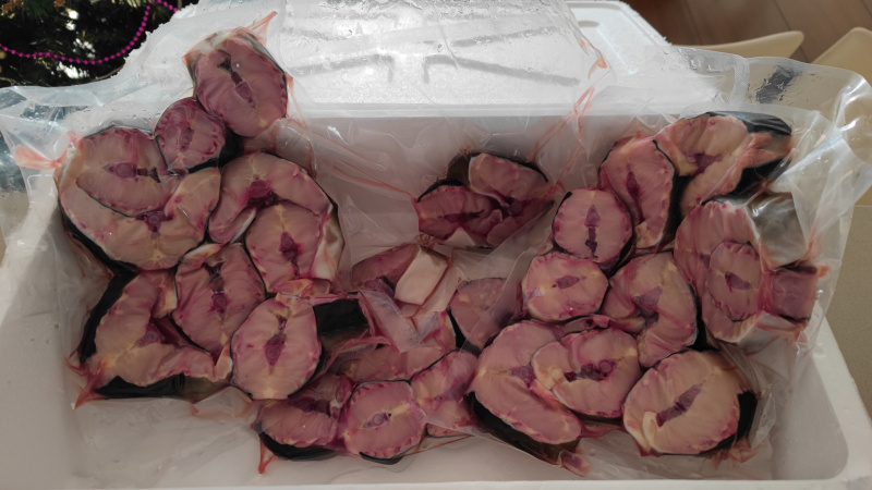 Также осетрина нормально морозится в морозилке и лежит там достаточно долго (мне обычно больше месяца и не надо). Размораживать ее нужно медленно, в холодильнике (желательно даже в отделении для мяса, где самая низкая температура), но зато после разморозки она во вкусовых качествах почти ничего не теряет, так что можно заказать сразу 5-6 кило (чтобы уменьшить стоимость доставки на кило) и часть просто заморозить.