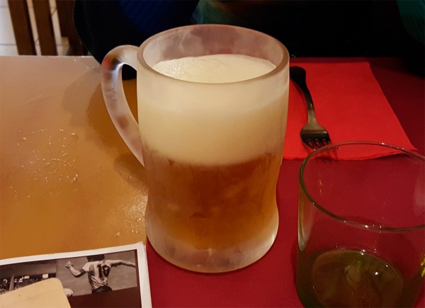 Для пива по-прежнему подают специально замороженную кружку - это прикольно.
