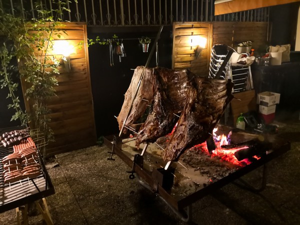 Но они, как я понял, больше всего славятся тем, что могут под заказ большой компании делать мясо так, как его готовят в Аргентине. Вчера во внутреннем дворике они готовили под заказ и это выглядело вот так.
