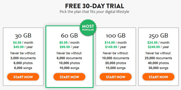 А вот с платным увеличеним объема тут все еще хуже, чем у DropBox. Стоит-то оно дешевле раза в два, но максимум, который можно докуметь - только 100 Гб.
