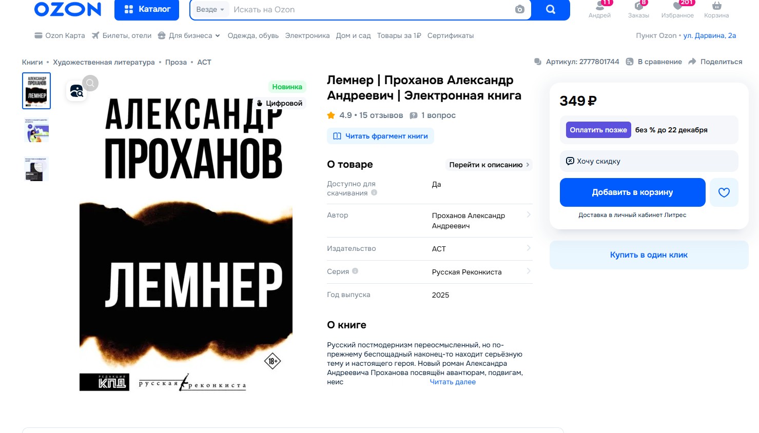 На Озоне можете в один клик купить. Еще есть в виде аудиокниги, 419р.