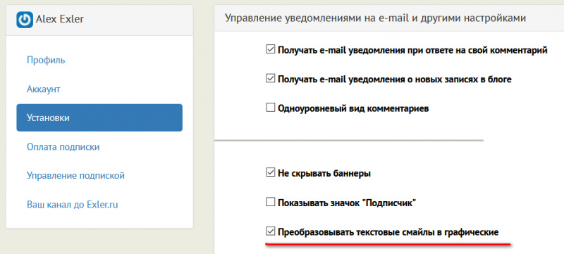 Для подписчиков сайта сделали возможность отключать перевод текстовых смайликов в графические.