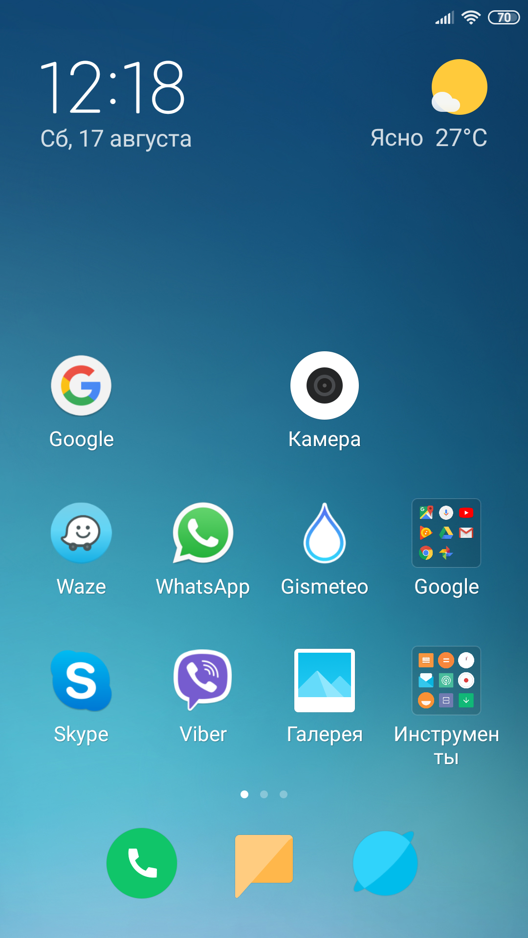 Пошел по пути наименьшего сопротивления. На какой-то штатной обоине выбрал кусок синего фона, увеличил картинку и использовал в качестве обоины.