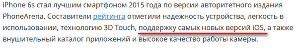 В том, что последнему айфону экспертами ставится в достоинство поддержку новых версий операционки, которая разработана специально для айфонов/айпэдов.
