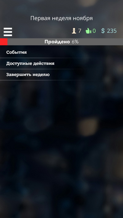 Когда все действия пройдены - нажимаете на "Завершение недели", после чего начинается следующая неделя. Там также сначала даются вводные ("События"), далее появляются доступные действия.