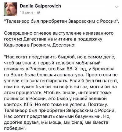 Вот глянь грозный тв или как там и сравни с нашим. Если Путин докладывает об успехах, устраивает выволчки за неисполнения, то Кадыров читает мораль, дает советы учит жить Совершенно другой тип. И про врагов народа. Потому что чечня это родовой строй для них воспоминания об чеченах врагах нрода очень болезненно. Кароч большая акция потому что облажался по крупному.