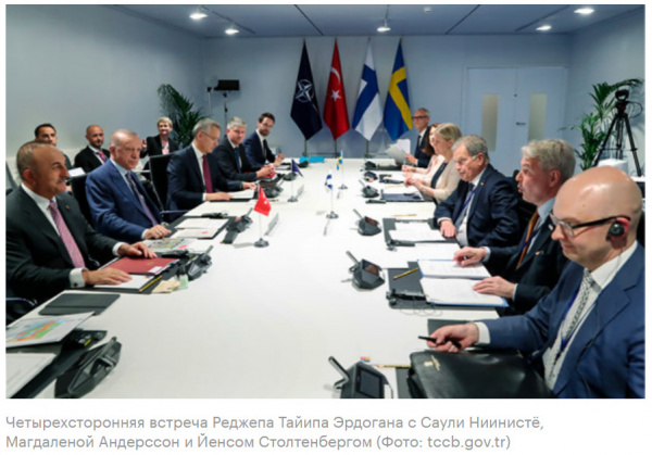 «По итогам этой встречи наши министры иностранных дел подписали трехсторонний меморандум, подтверждающий, что Турция на саммите в Мадриде на этой неделе поддержит приглашение Финляндии и Швеции стать членами НАТО», — сообщила канцелярия.