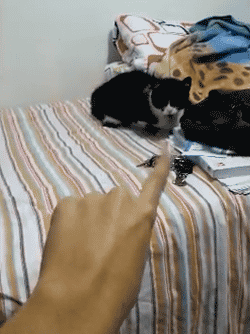 А как у всех у них. Я этого момента ждала и всё боялась пропустить. Этот кот у меня уж очень эммм беззащитный и не всегда сообразит, как спасаться. И бесстрашный.