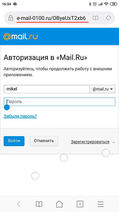 При нажатии на скачивание бумажки идет переход якобы на страницу авторизации в почте Mail.ru, и только парашют за спинок Штирлица адрес сразу показывает подделку.