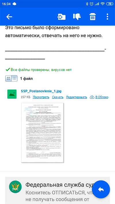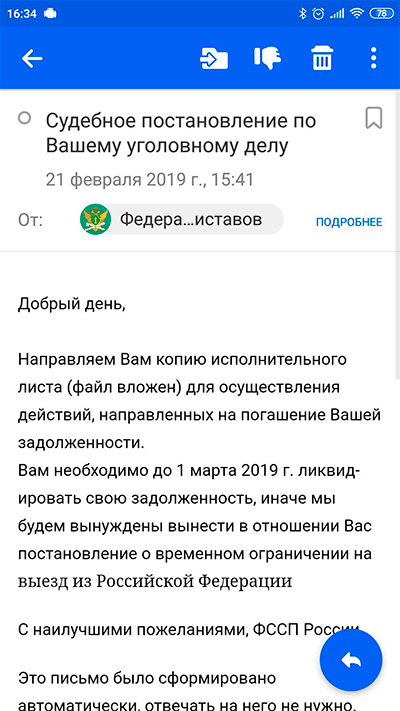 Очередной вид развода. На почту приходит вот такое грозное письмо "Судебное постановления по Вашему уголовному делу".