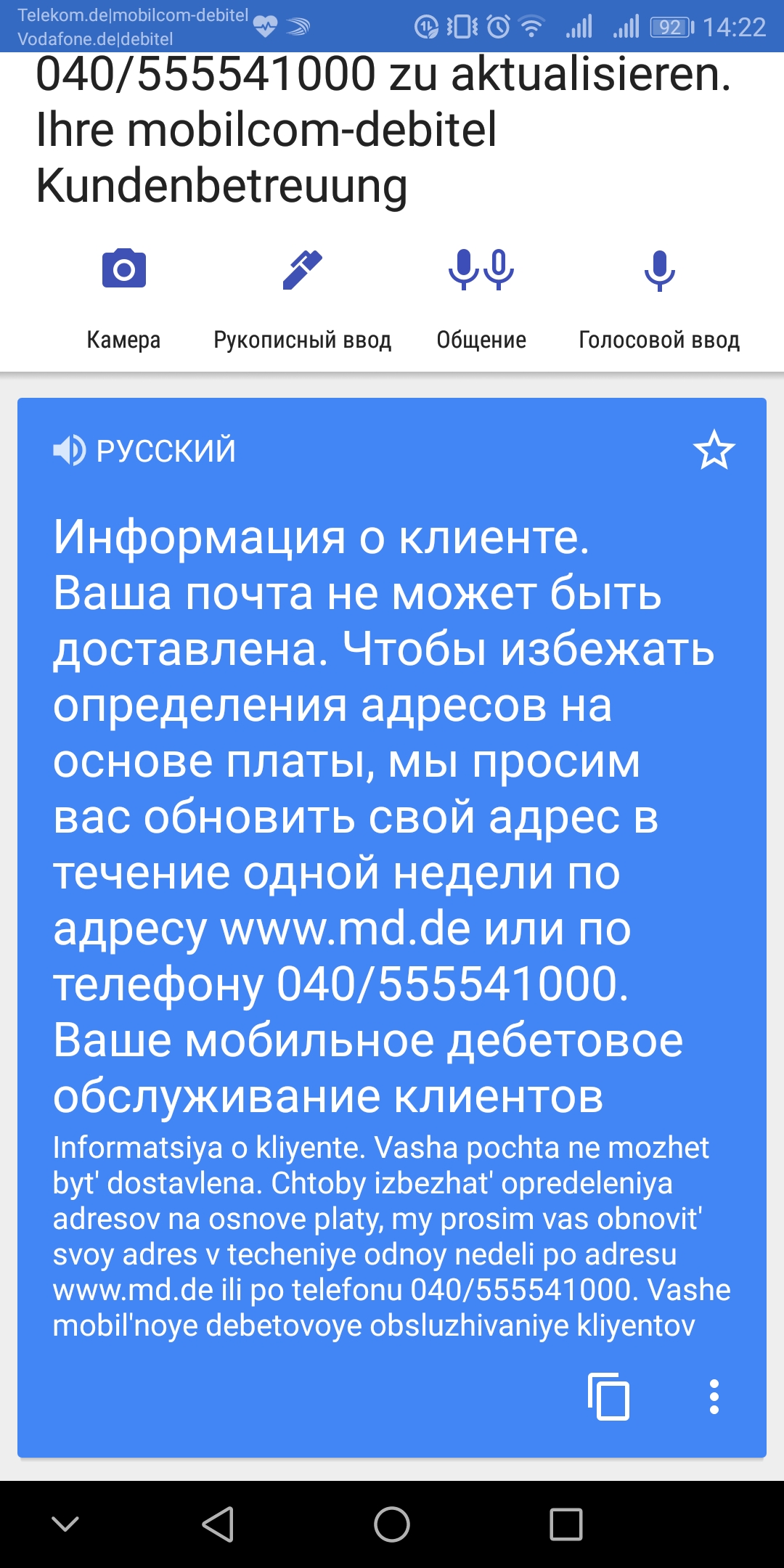 как-то пару лет назад решил сравнить способности к переводу разных искусственных интеллектов. на телефоне. перевод какой-то СМСки. с немецкого на русский. вот что сказал гугл: