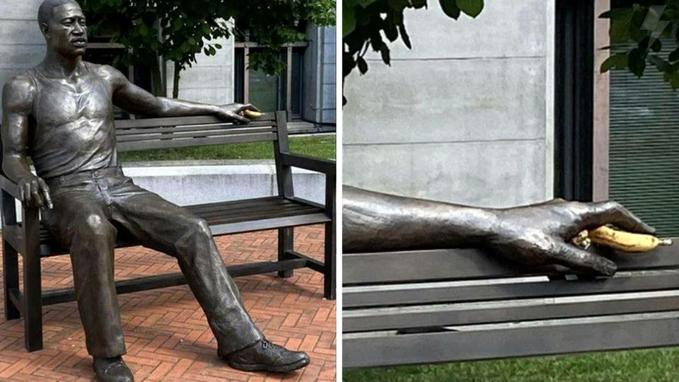 А вот с "чёрным" памятником проблема: несколько дней какой-то нехороший человек преклоняет колено и подкладывает банан ("шоб не голодал!").