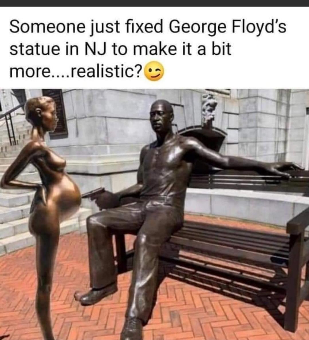 Великому гуманисту и просветителю Джорджу Флойду установили очередной памятник. Причем на этот раз бюст этому достойнейшему человеку изваяли из белого камня.