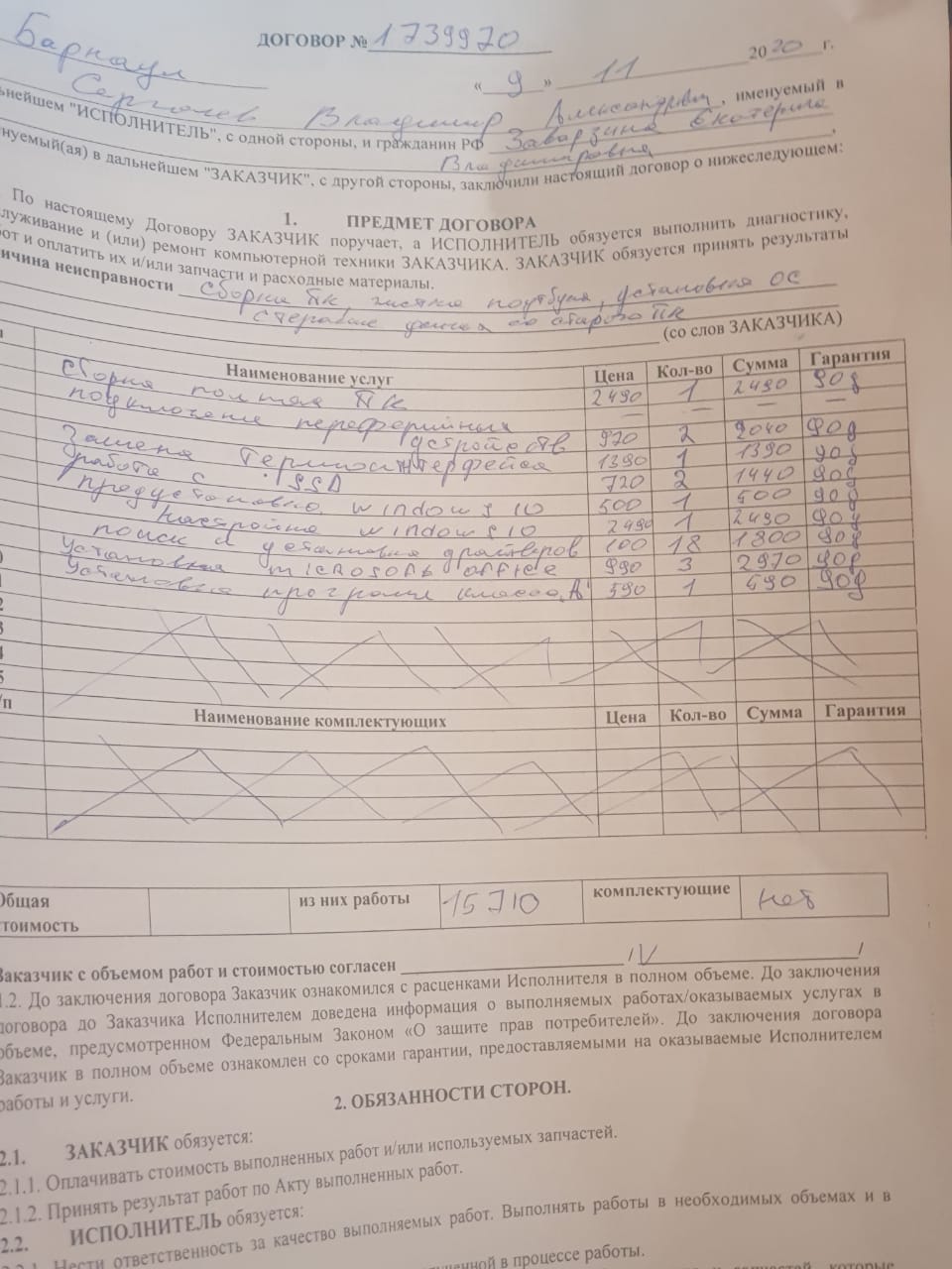 Я болею и не могу помочь своему знакомому. К нему вчера пришли 2 бойца по объявлению. По телефону озвучили ценник за сборку системника из купленных комплектующих 1к. Ну, он думал, что ему выкатят счет 2-3к. Еще он попросил почистить ноут.