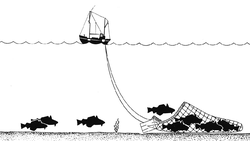 Трал, вроде бы, по каменистому или усеянному бочками морскому дну скрести не должен...