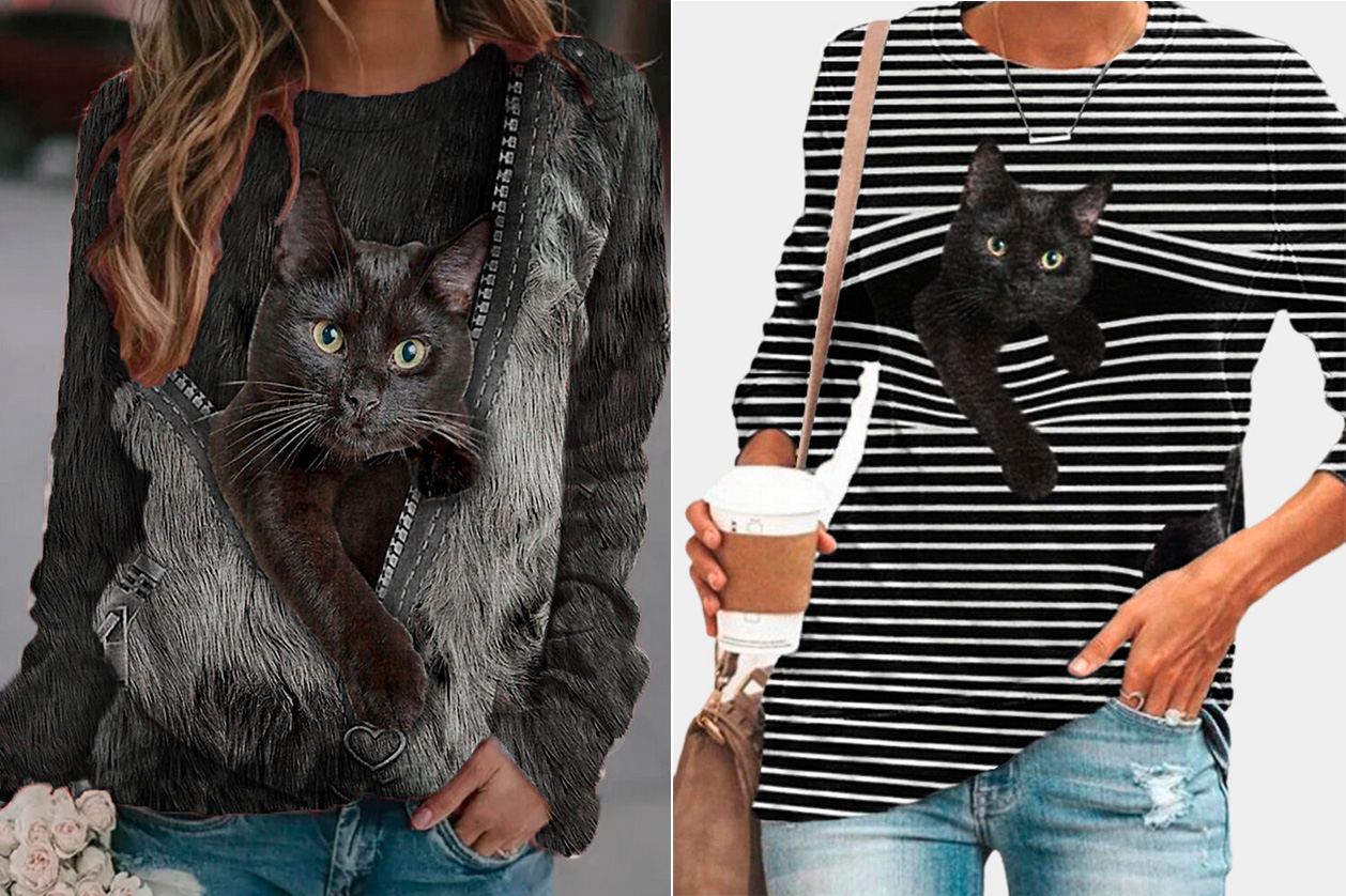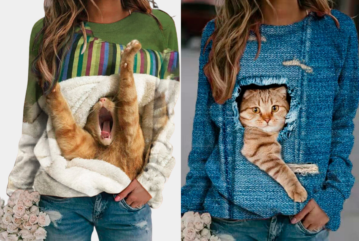 А сейчас они стали рекламировать женскую одежду с котиками - кот Бублик от нее просто в восторге. Смотрите, какая прелесть!