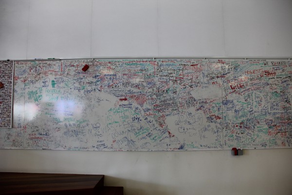 Остальную стену покрывают надписи, оставленные посетителями. Да, ТО САМОЕ слово там тоже есть.