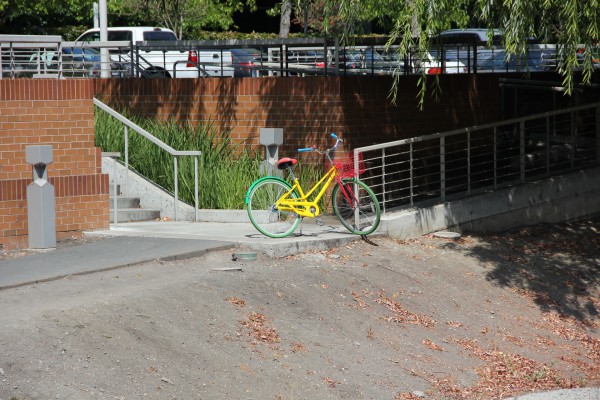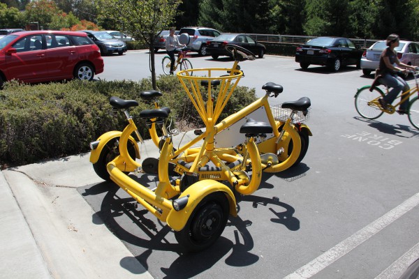 Знаменитые гугловелики - разбросаны по всему кампусу, кому надо - берет и едет.