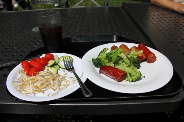 Впрочем, было уже время ланча, поэтому воспользовались поводом посмотреть, как тут народ питается. Нормально питается - выбор большой, ассортимент колбасок сделал бы честь любому пивному ресторану. Но пиво - не наливают. Настолько далеко гугловская демократия не распространяется - и правильно.