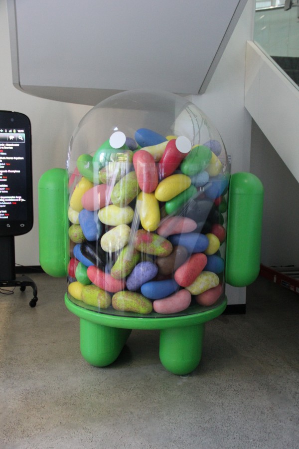 А вот скульптурке Jelly Bean (последней на данный момент версии) - не повезло. Злые люди постоянно пытались выковырять из агрегата жвачку с начинкой, и скульптурку пришлось поставить в холл офиса.