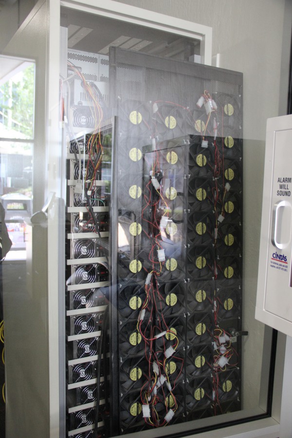 Ну и святая святых - первая серверная стойка Google. Хитрые Пейдж с Брином напихали туда мамаш с дисками без корпусов-юнитов и тем самым в одну стойку ухитрились засунуть в два раза больше железа (оплату-то брали за юнит).