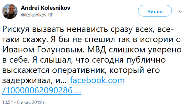 Журналист Андрей Колесников в Facebook. Он бы не спешил.