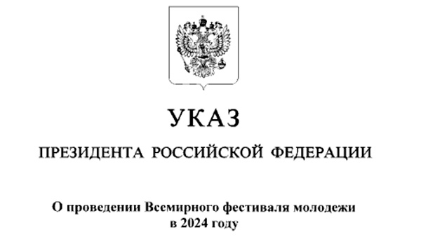 “В феврале-марте 2024 года в России пройдет Всемирный фестиваль молодежи, указ об этом подписал президент Владимир Путин.”