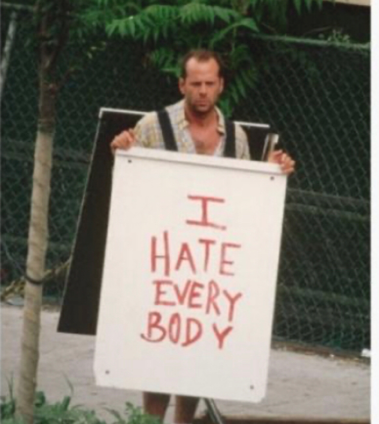 про это даже фильм сняли, не помню как называется, там еще парень стоял в районе похожим на гарлем с плакатом, похожим на вот это вот все и ничего.