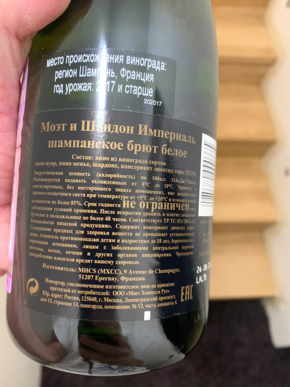 2.1. При этом так как раньше категория "игристое вино" и "шампанское" была одна и та же, слово "шампанское" было написано в скобочках, как синомим, то пересертификация продукции ООО "Моет.." не требуется, так как категория не меняется, можно просто поменять надпись на белой наклейке на русском языке, оставив большую англоязычную надпись Champagne на фирменной этикетке.