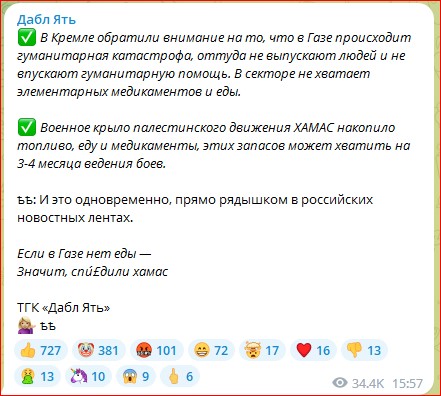 Ну, то есть никакого теракта не было, похищения заложников, среди которых женщины, старики и дети, не было, а израильская военщина просто подло напала на мирный ХАМАС. Вот ООН теперь и призывает немедленно остановить операцию возмездия и освобождения заложников, а заложники - да наплевать на заложников, говорят в ООН. Тут главное - остановить огонь, чтобы ХАМАС не дай бог не пострадал.