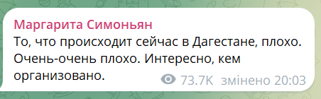Симоньян: То, что происходит в Дагестане, плохо. Интересно, кем организовано